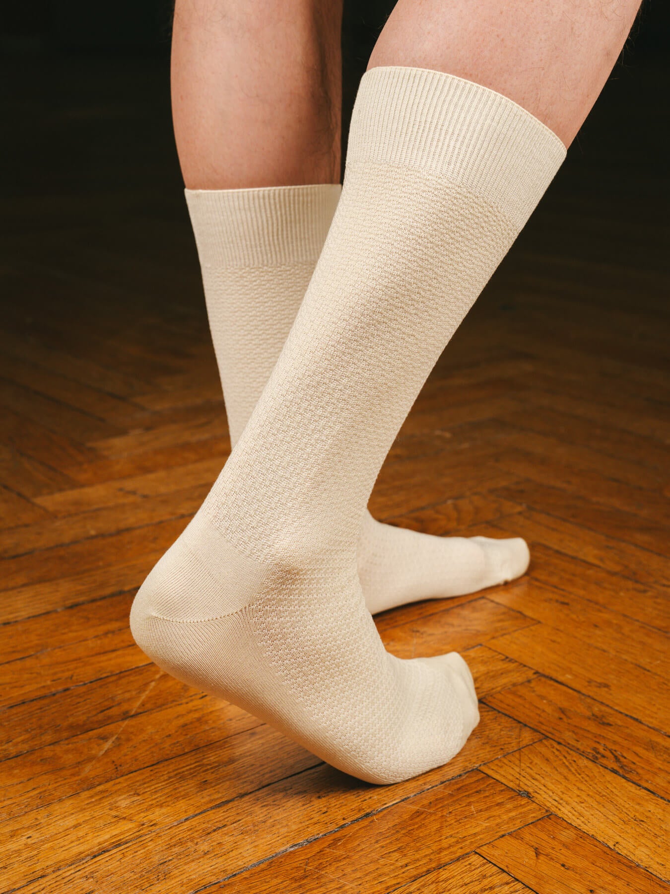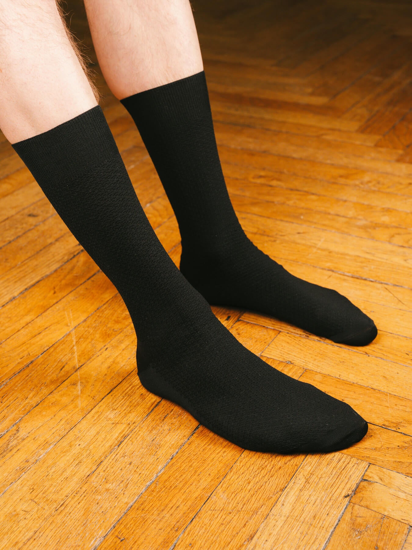 Ces chaussettes fines sont tricotées sur des machines à 200 aiguilles, le top pour obtenir des chaussettes adaptées à des tenues habillées.
