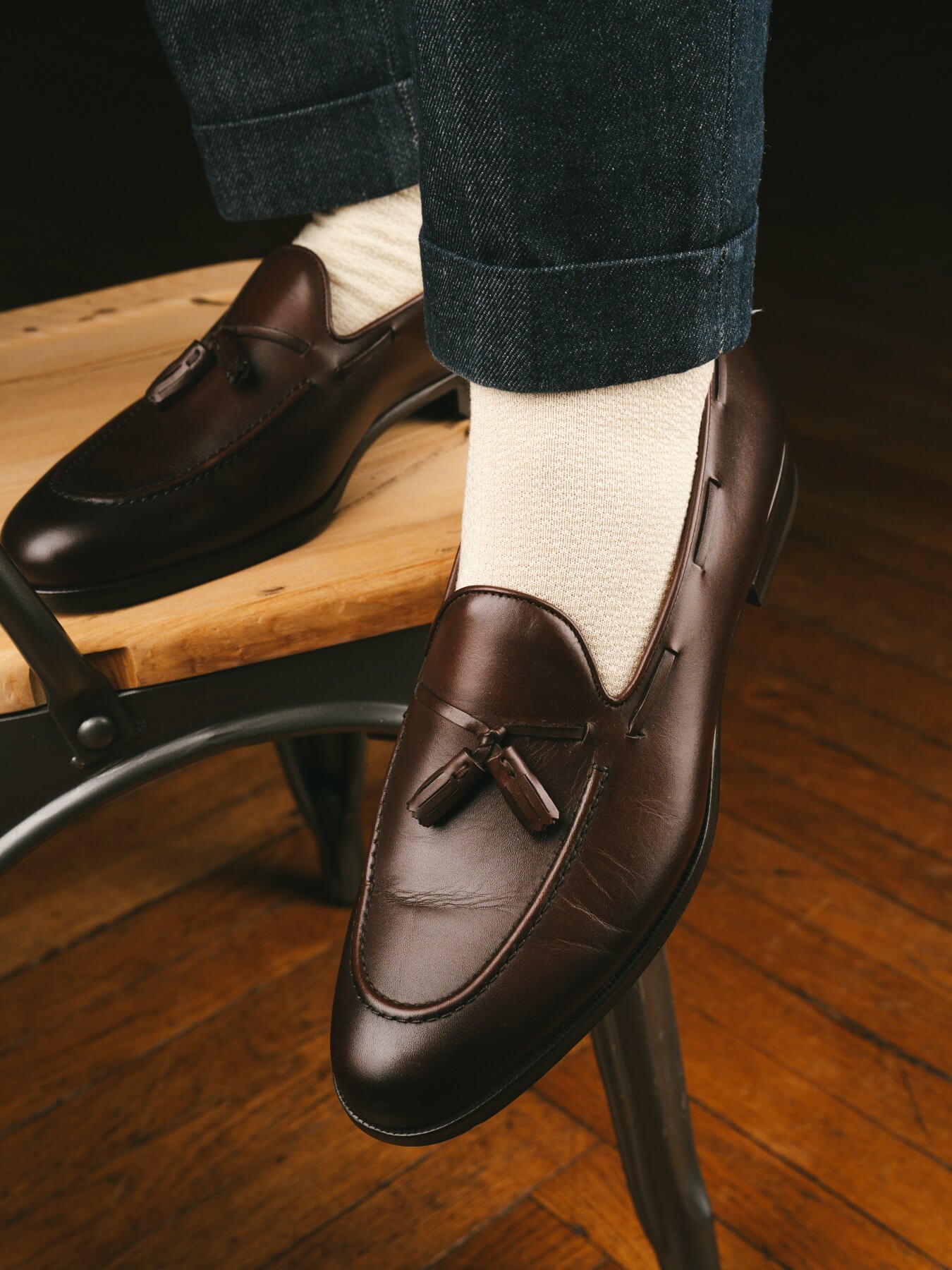 Pour ces chaussettes nous nous approvisionnons chez Filmar, un filateur italien haut de gamme plébiscité par les maisons européennes de luxe pour leurs chaussettes. Notre fil provient de sa gamme Filoscozia, de qualité supérieure.