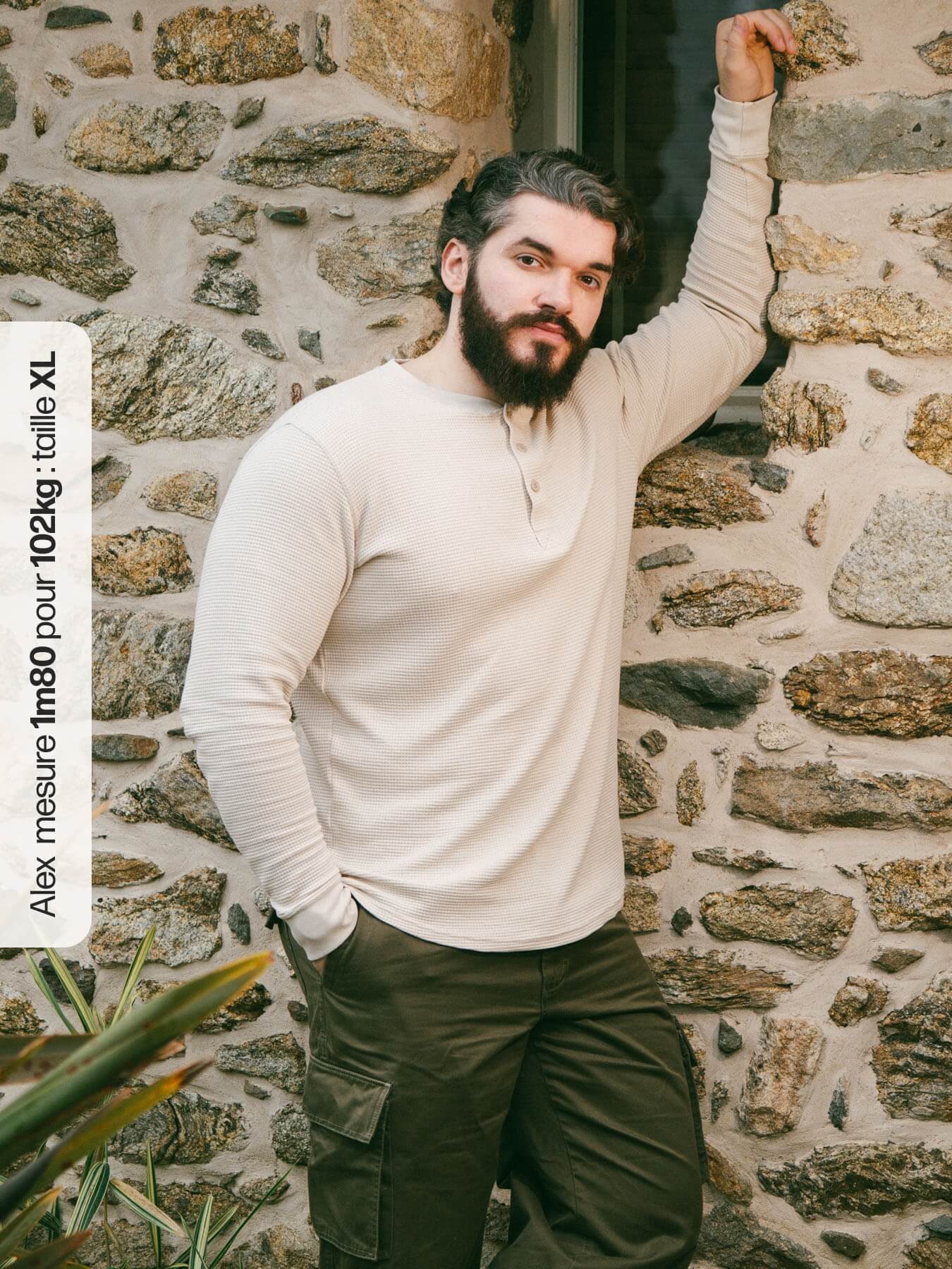 Son maillage gaufré donne du relief à ce Henley, qui viendra ajouter de la texture à votre tenue, sans en faire trop.